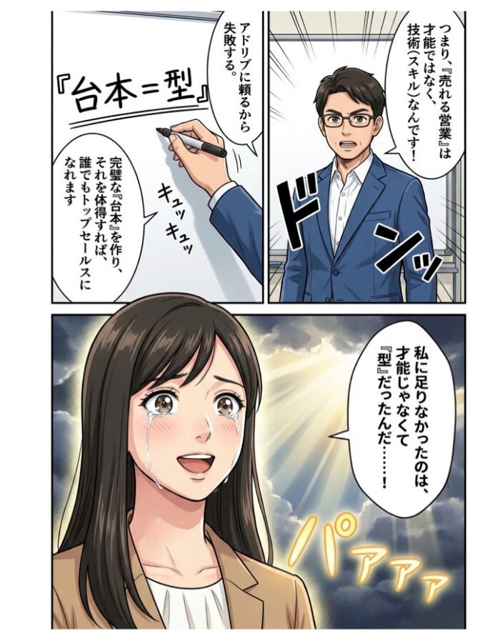 そんな私が、購買心理の『型』に基づく営業台本を作成することで、